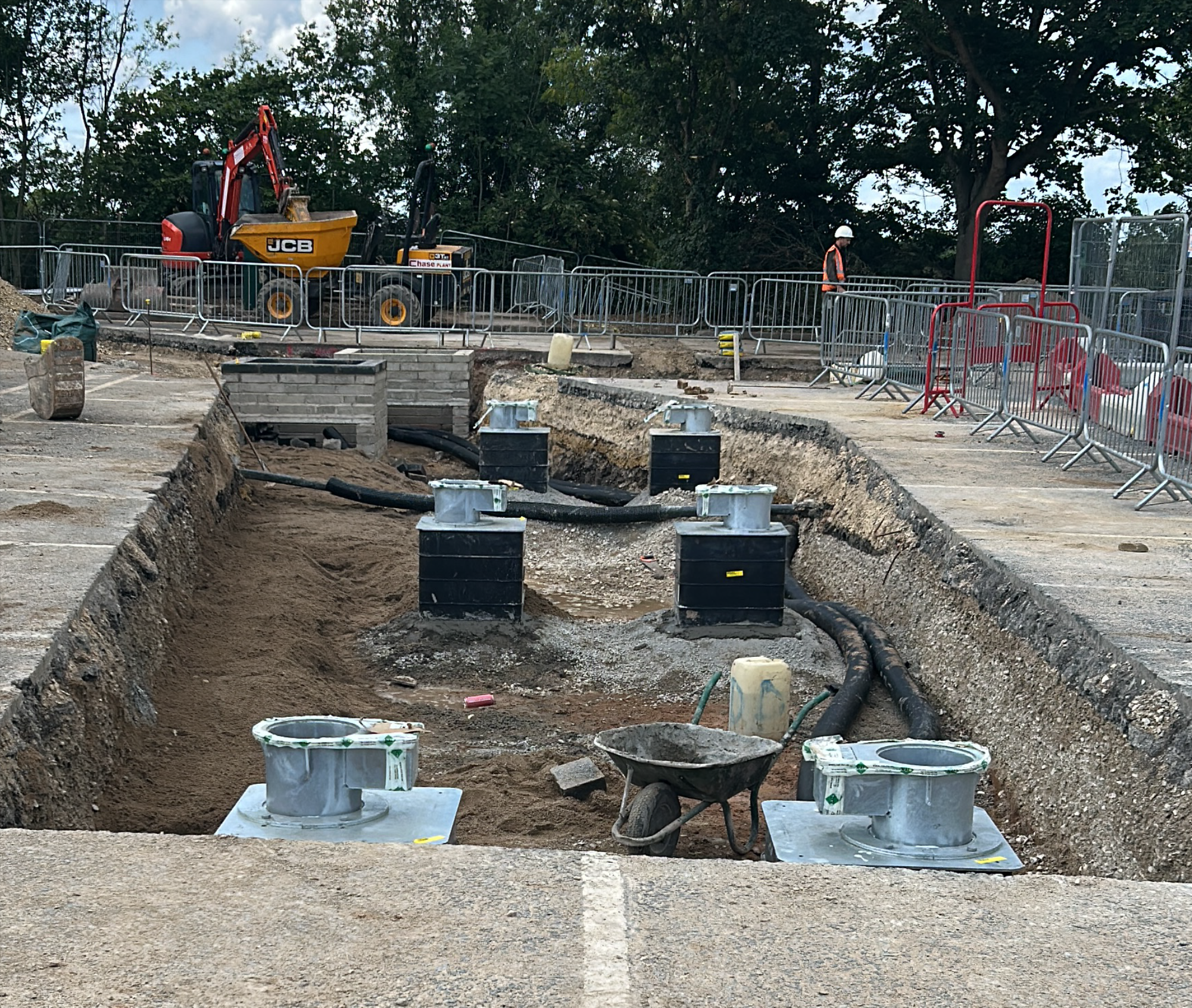 We understand that many EV hub connections require out-of-hours works, particularly for drainage. Blackoak Contracts provides trained teams equipped with SMSTS and first aid qualifications to ensure leadership and safety, even in the absence of site managers. Our operatives are Street Works certified, enabling them to work with local councils and traffic management companies to keep the public safe at all times.